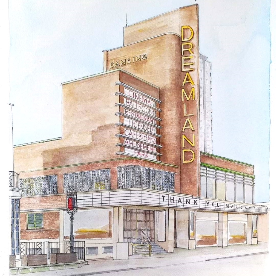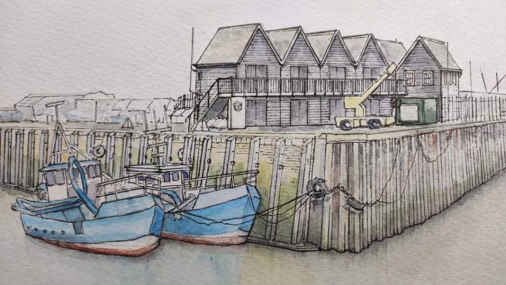 Sian C. Morgan explores the coastal life of Thanet through watercolour and ink drawings, initially with studies of lonely wind shelters, more recently Sian has captured many architectural icons familiar to the denizens of ‘The Isle’.